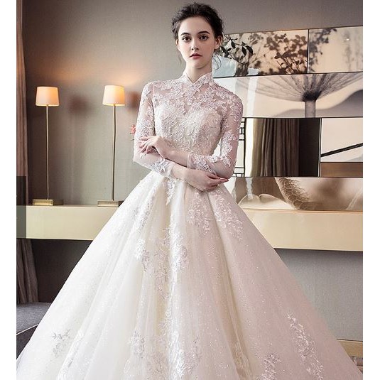 Wedding Dress Long Sleeved Nude Wedding Dress