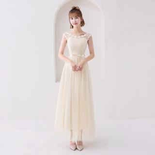 Women Elegant Beige Wedding Dinner Evening Dress Gown Bridesmaid Wedding Dresses
